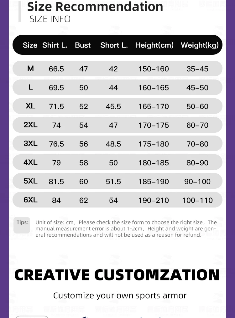 Size 6XL:suitable for height190-210cm, weight 100-110kg.