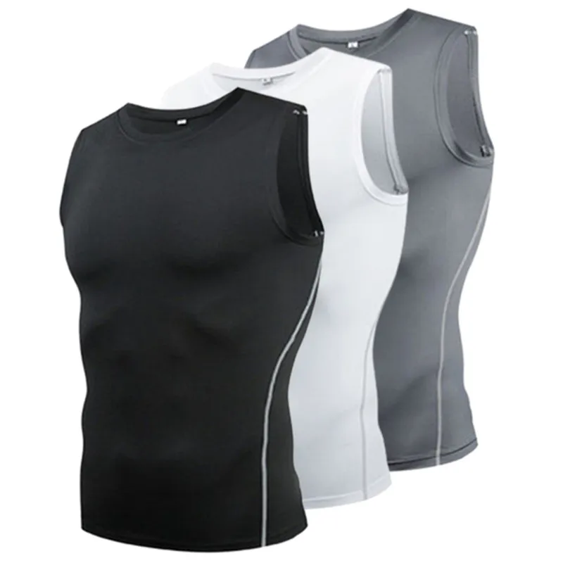 قميص رياضي ضيق ضاغط للرجال، طبقة أساسية بدون أكمام، تي شيرت، قميص داخلي، سويت شيرت، ملابس رياضية